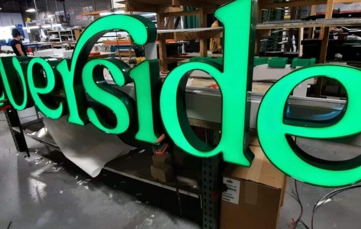 Channel letter signs are 3D letters that are custom-made to suit your brand. They are typically used for exterior signage for businesses, offices, and retail locations. Each letter is individually crafted and illuminated with LED lights, ensuring visibility day and night.